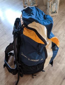 Das Gurtzeug ist in einem sehr guten Zustand und mit Deuter Tragesystem & Speedbar