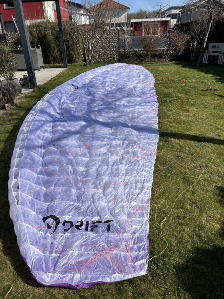 Ich habe den Schirm Anfang 2023 als Zweitschirm (Backup) neu gekauft und seitdem wurden nur 5 Flüge durchgeführt. Der Schirm ist neuwertig, das Tuch fühlt sich ganz frisch an und er lag nur im Abstellraum.