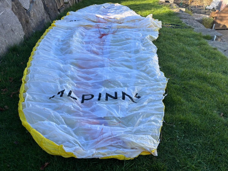 Der Alpina4 ist bis zum Check einwandfrei geflogen und wird dies auch aktuell noch machen. Er wird aber aufgrund der Tuchwerte bewusst als „nicht flugfähig“ verkauft. Fürs Groundhandling oder Düne wahrscheinlich noch super, aber alles auf eigene Gefahr.
