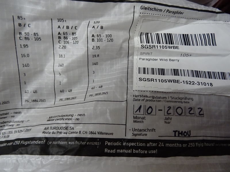 Startgew. 65 - 105 kg. Erstflug 10. 2022 / 23,5 h Flugzeit bei 63 Flüge.