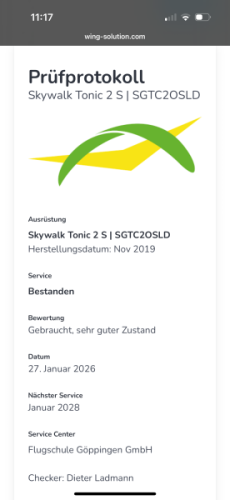 Zu verkaufen: Skywalk Tonic 2 S Gleitschirm, Baujahr 2019