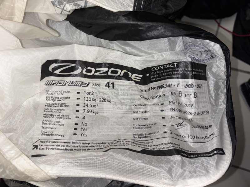 Tandem Komplettausrüstung zu verkaufen – Ozone Magnum 3 + Tandemgurtzeuge + Rettung + Spreize