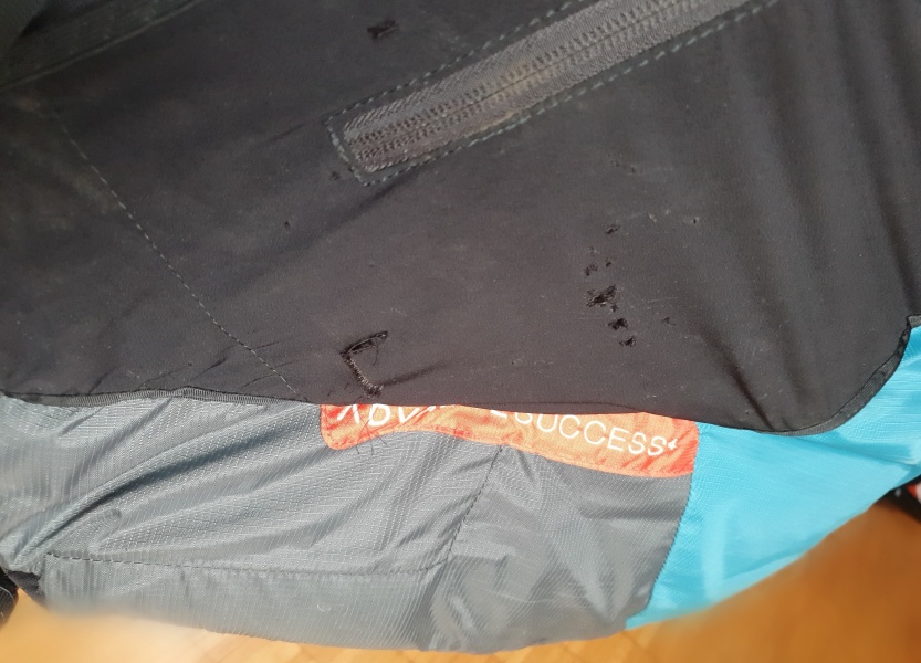 Lediglich an der Seitentasche ist ein kleiner Riss, der in der Werkstatt repariert wurde.