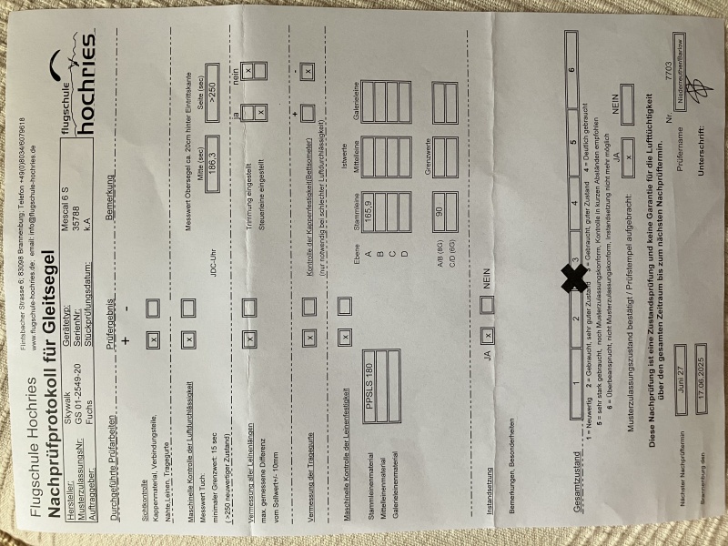 Verkauft wird ein Skywalk Mescal 6 S (75 - 95 kg) mit neuem Check vom Juni 2025. Seit dem letzten Check nicht mehr ausgepackt / geflogen.