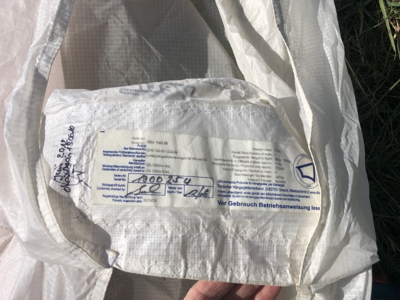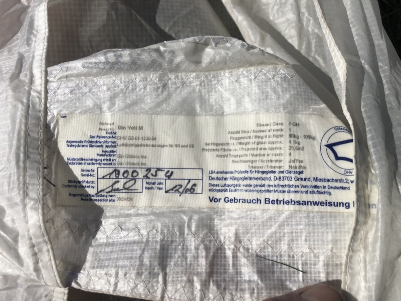 verkaufe gebrauchten Gleitschirm Gin Yeti Größe M für Groundhandling, siehe Bilder.