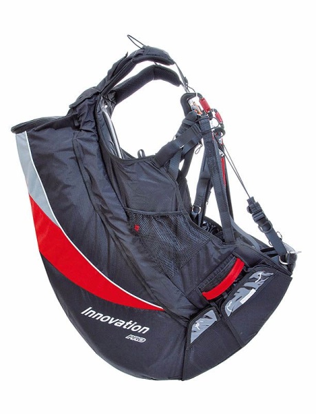 Das Innovation Pro ist ein komfortables Allround-Gurtzeug mit integriertem Protektor und Rettungscontainer, geeignet für Einsteiger bis Thermik- und Streckenpiloten.
