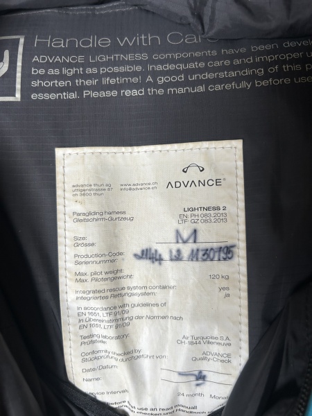 Ich verkaufe ein 2016 Advance Lightness 2 in der Größe M (Pilot height 165 - 183 cm).