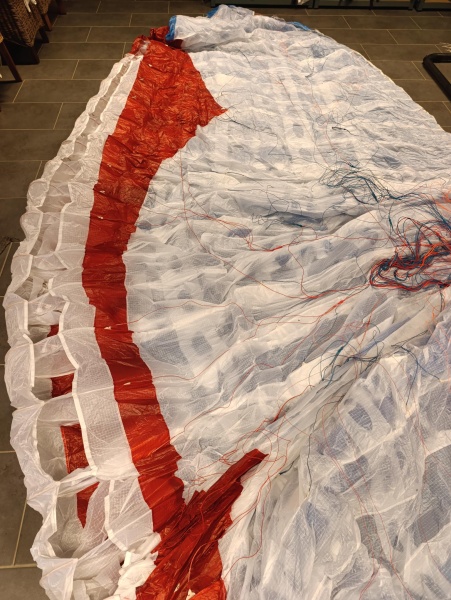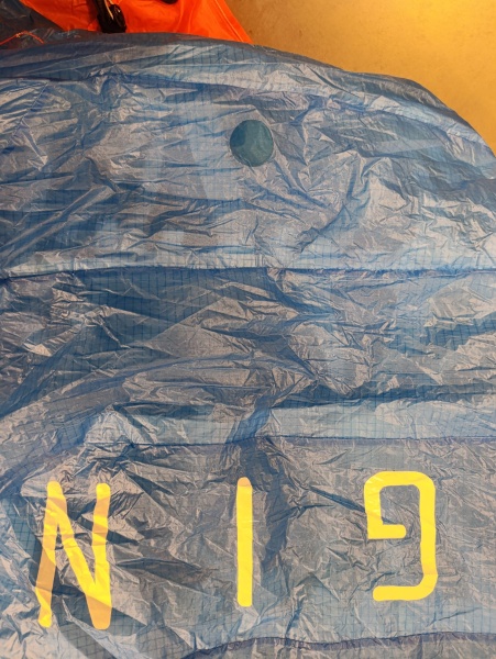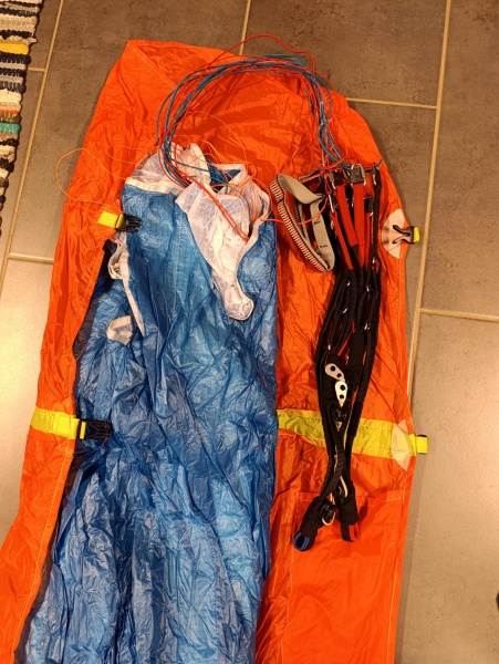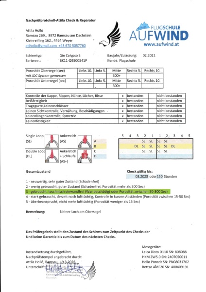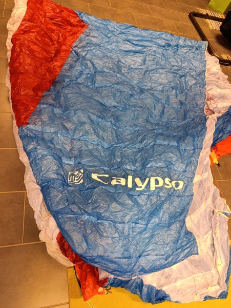 Gin Calypso S mit neuem Check, Tuchwerte über 300 sec. Der Schirm war nicht mehr als 10h in der Luft. Eine kleine Klebestelle am Obersegel.