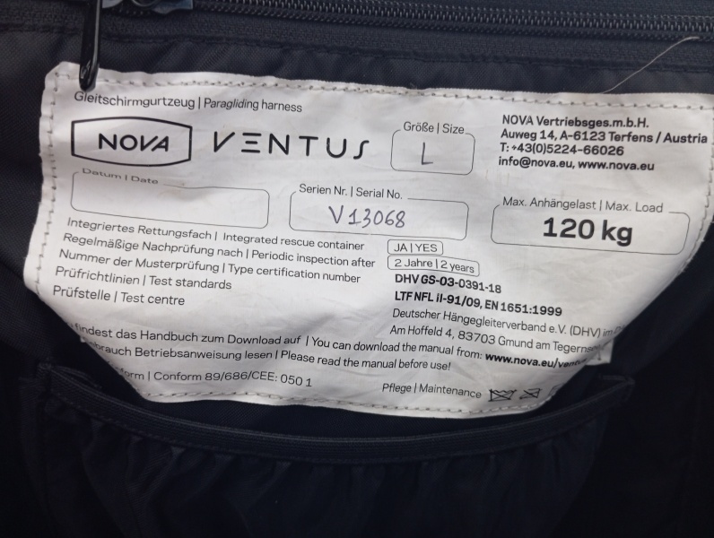 Nova ventus L, guter Zustand, komplett mit Speed Bar und KarabinerTelefon: 017683644034
