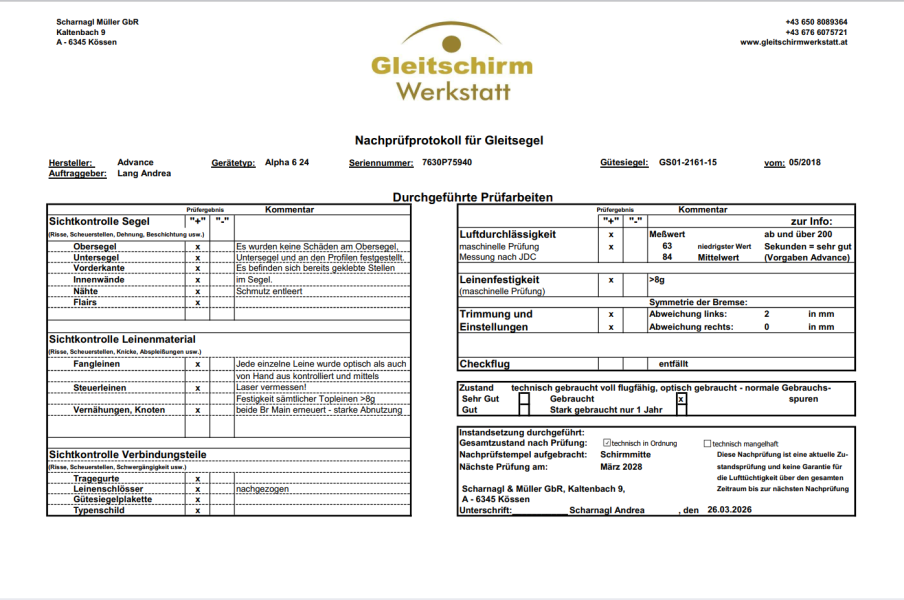 Bitte denkt daran! Luftsportgeräte müssen beim Betrieb in Deutschland mustergeprüft und stückgeprüft sei. Die Stückprüfung muss durch eine Kennzeichnung auf dem Gerät ersichtlich sein. Genaue Angaben zu dieser Kennzeichnung findet Ihr hier. |