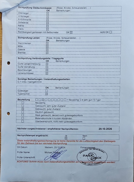 Bitte denkt daran! Luftsportgeräte müssen beim Betrieb in Deutschland mustergeprüft und stückgeprüft sei. Die Stückprüfung muss durch eine Kennzeichnung auf dem Gerät ersichtlich sein. Genaue Angaben zu dieser Kennzeichnung findet Ihr hier. |
