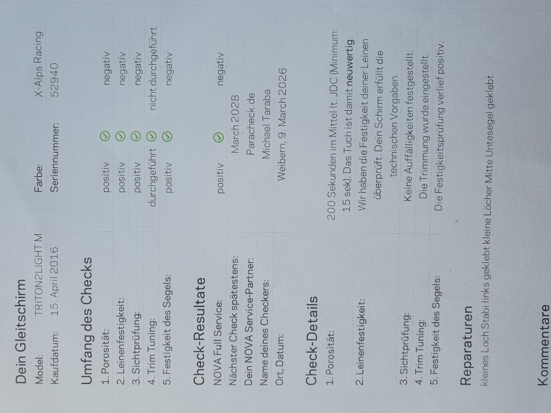 Verkaufe einen Nova Triton 2 light M. Der Schirm hat einen neuen Check. Die Tuchwerte sind neuwertig. Der Schirm ist wenig geflogen und immer gut gelagert.