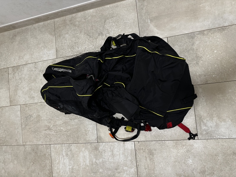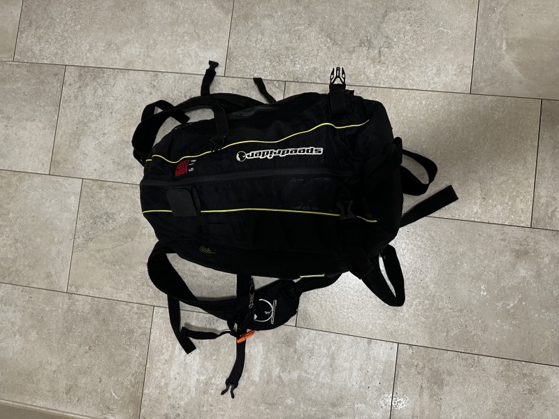 GIN Speedride Wendegurtzeug mit integriertem Rucksack – die bewährte Wahl für Speedriding, Speedflying und Soaring. Das Gurtzeug wurde nur wenige male zum Ground Handling verwendet und ist daher in sehr gutem, quasi neuwertigem Zustand. Wendekonstruktion: Rucksack einfach umstülpen und los geht's. Unabhängige Beingurte, abnehmbarer Protektor, ergonomisches Tragesystem mit Belüftung, Ski- und Ausrüstungsbefestigungen.