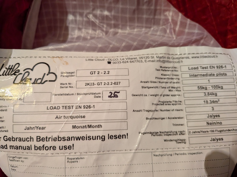 Bitte denkt daran! Luftsportgeräte müssen beim Betrieb in Deutschland mustergeprüft und stückgeprüft sei. Die Stückprüfung muss durch eine Kennzeichnung auf dem Gerät ersichtlich sein. Genaue Angaben zu dieser Kennzeichnung findet Ihr hier. |