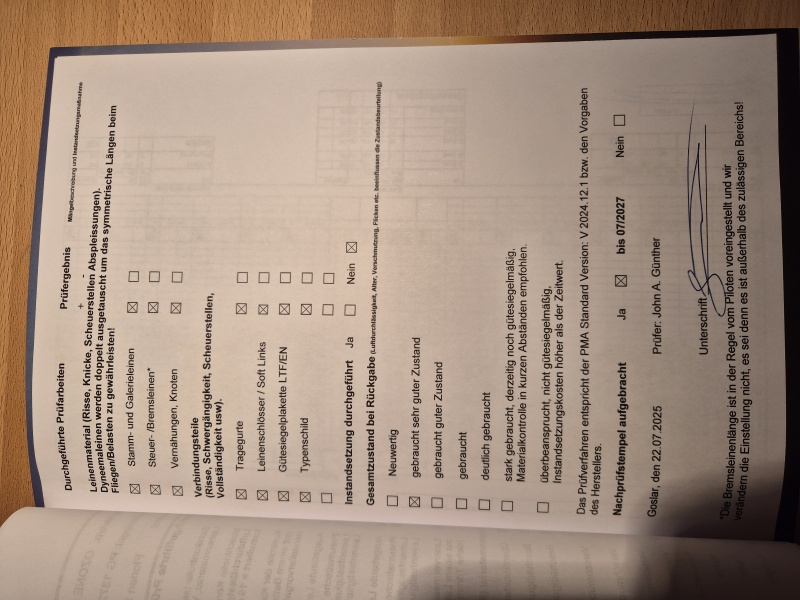 Bitte denkt daran! Luftsportgeräte müssen beim Betrieb in Deutschland mustergeprüft und stückgeprüft sei. Die Stückprüfung muss durch eine Kennzeichnung auf dem Gerät ersichtlich sein. Genaue Angaben zu dieser Kennzeichnung findet Ihr hier. |