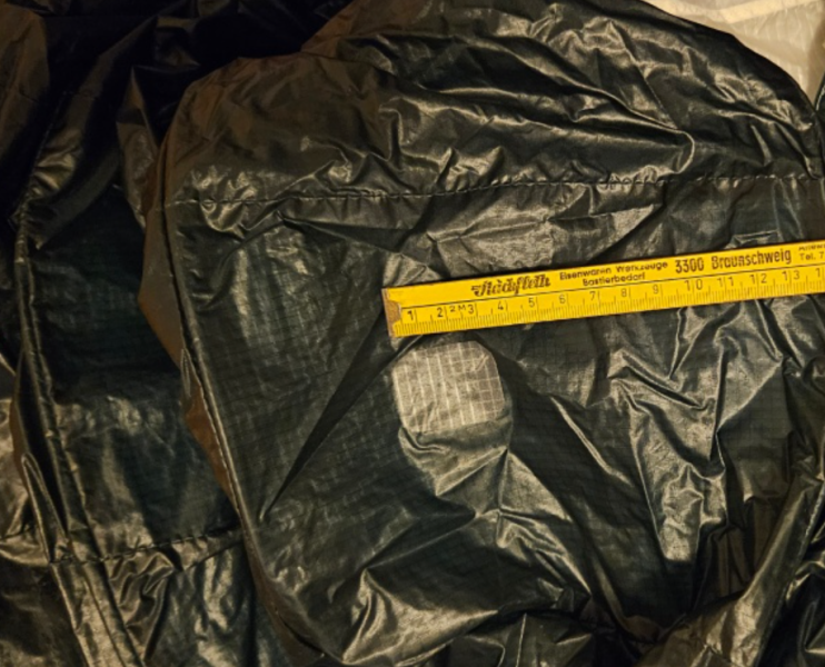 • Seit Juni 2025 befinden sich drei kleine Risse (bis maximal ca. 2 cm) im Obersegel, die durch Vogelkrallen entstanden sind. Die Risse wurden jeweils beidseitig mit Klebesegel überklebt und halten seither einwandfrei.