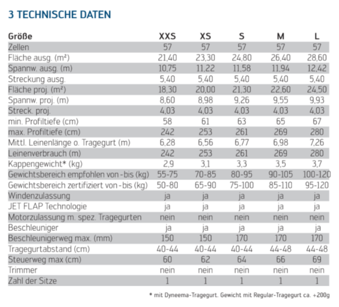 • Weitere technische Daten (offizielle Angaben von Skywalk) siehe Bild
