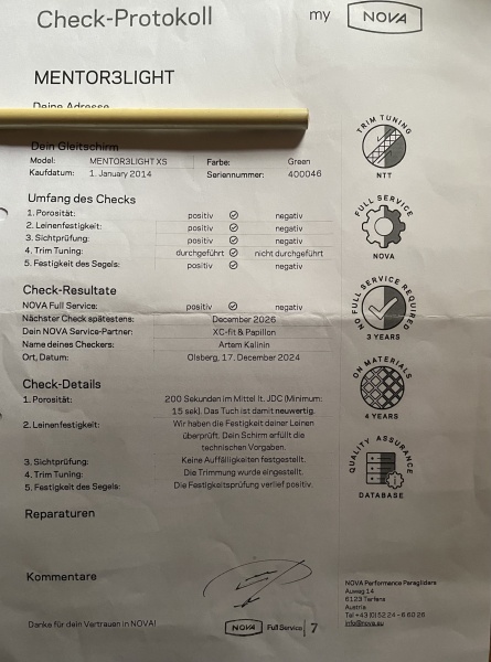 Mentor 3 light XS, immer noch voll flugtauglich und erstaunlich konkurrenzfähig, eben eine Legende. Check bis 12/2026.