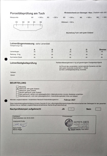Bitte denkt daran! Luftsportgeräte müssen beim Betrieb in Deutschland mustergeprüft und stückgeprüft sei. Die Stückprüfung muss durch eine Kennzeichnung auf dem Gerät ersichtlich sein. Genaue Angaben zu dieser Kennzeichnung findet Ihr hier. |