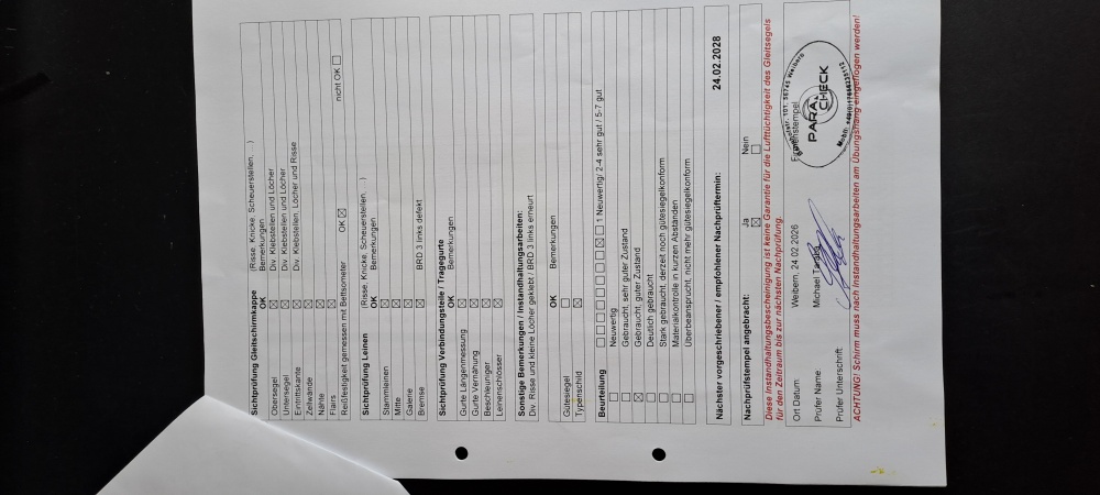 Ich verkaufe auch noch ein Passagier- und Piloten -Gurtzeug.