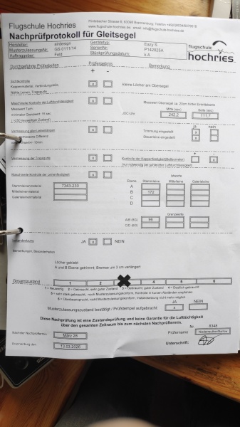 Bitte denkt daran! Luftsportgeräte müssen beim Betrieb in Deutschland mustergeprüft und stückgeprüft sei. Die Stückprüfung muss durch eine Kennzeichnung auf dem Gerät ersichtlich sein. Genaue Angaben zu dieser Kennzeichnung findet Ihr hier. |