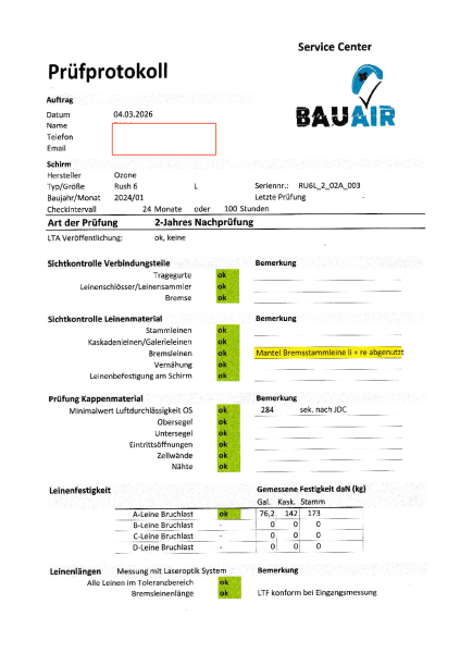 Bitte denkt daran! Luftsportgeräte müssen beim Betrieb in Deutschland mustergeprüft und stückgeprüft sei. Die Stückprüfung muss durch eine Kennzeichnung auf dem Gerät ersichtlich sein. Genaue Angaben zu dieser Kennzeichnung findet Ihr hier. |