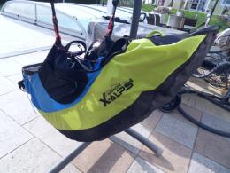 Es ist ein klassisches, leichtes mit nur 3,5 kg das den aufblasbaren Airbag-Protektor von Karpofly verwendet, der beim Start durch Einblasen in ein Rohr aufgeblasen wird und mit einem Ventil zum Wegpacken entleert werden kann. Das Gurtzeug hat diesebzüglich ein sehr kleines Packmass. Ich hätte auch sehr günstig Retter mit 110 und 120 kg, diese sind gerade beim Packservice !Telefon: 00436643383087