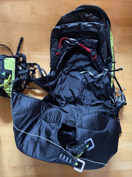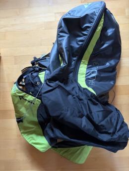 Das Wendegurtzeug ist in sehr gutem Zustand, nur stehende Landungen – siehe Fotos. Als Packsack hat es eine kleine Schramme abbekommen (vom Fachmann repariert – siehe Foto). Bestens geeignet für Walk&Fly.