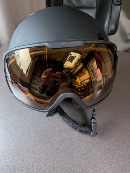 Verkaufe den Skihelm mit einem fix verbauten Visier in der Tönung Kat. 2-4 der Marke Julbo, Typ Globe.