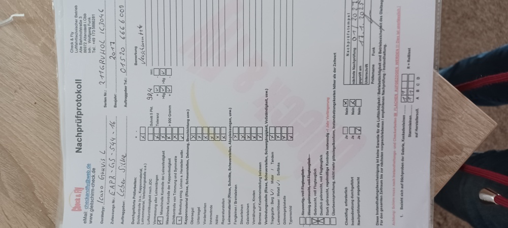 Bitte denkt daran! Luftsportgeräte müssen beim Betrieb in Deutschland mustergeprüft und stückgeprüft sei. Die Stückprüfung muss durch eine Kennzeichnung auf dem Gerät ersichtlich sein. Genaue Angaben zu dieser Kennzeichnung findet Ihr hier. |