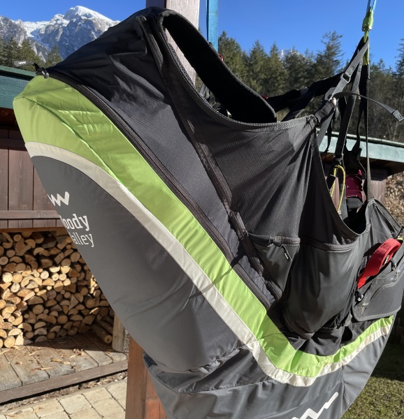 Das Wendegurt-Set ist in einem guten Zustand mit leichten Gebrauchsspuren. Die Karabiner wurden 2024 erneuert. Das Gurtzeug wurde 07/2019 gebaut. Der Retter, Kreuzkappe, ist Baujahr 08/18 und wurde regelmäßig neu gepackt, zuletzt 03/2025. Indipendence Cornetto 140 Kg. Advance Beschleuniger Karbon ist auch verbaut. Neupreis des Sets war 1.700 Euro.