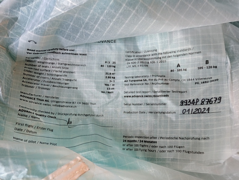 Der Pi3 stammt ursprünglich aus einer Schulung, die der Vorbesitzer aufgrund Hobbyaufgabe abgebrochen hat. Ich habe den Schirm selbst nur für ca. 10 Genussflüge genutzt.