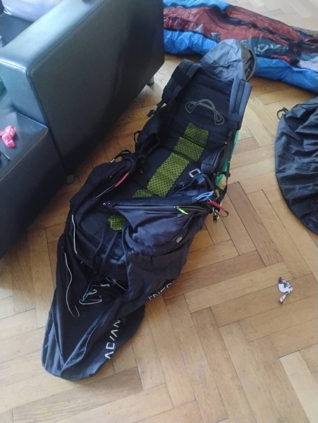 Also Rucksack, Packsack für Schirm, Schaumstoff Keile für Cockpit. Klett ist in Top Zustand. Wurde nicht viel verstellt und nicht komisch individualisiert. Nur Streckenflüge, keine Steilspiralen oder Wingover ... wirklich nicht mein Ding :)