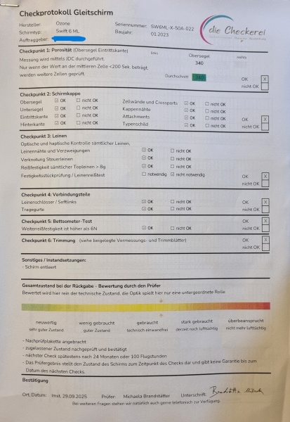 Verkaufe hier in Auftrag einen Swift Six ( 6 ) Größe ML in gutem gebrauchtem Zustand .Erstzulassung Jan. 23 - letztes Jahr von einer Flugschule erworben mit angegebenen 45h , Check war in 09/25 - Gebraucht - Tuchwerte JDC 340 Sekunden - also noch richtig Gut.